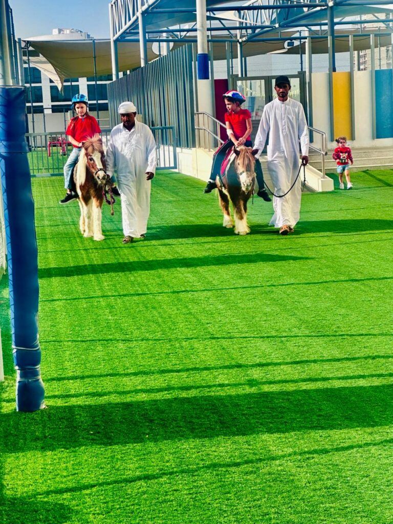 Interactive pony and camel sessions that teach students about animal care, nature, and local Emirati culture.