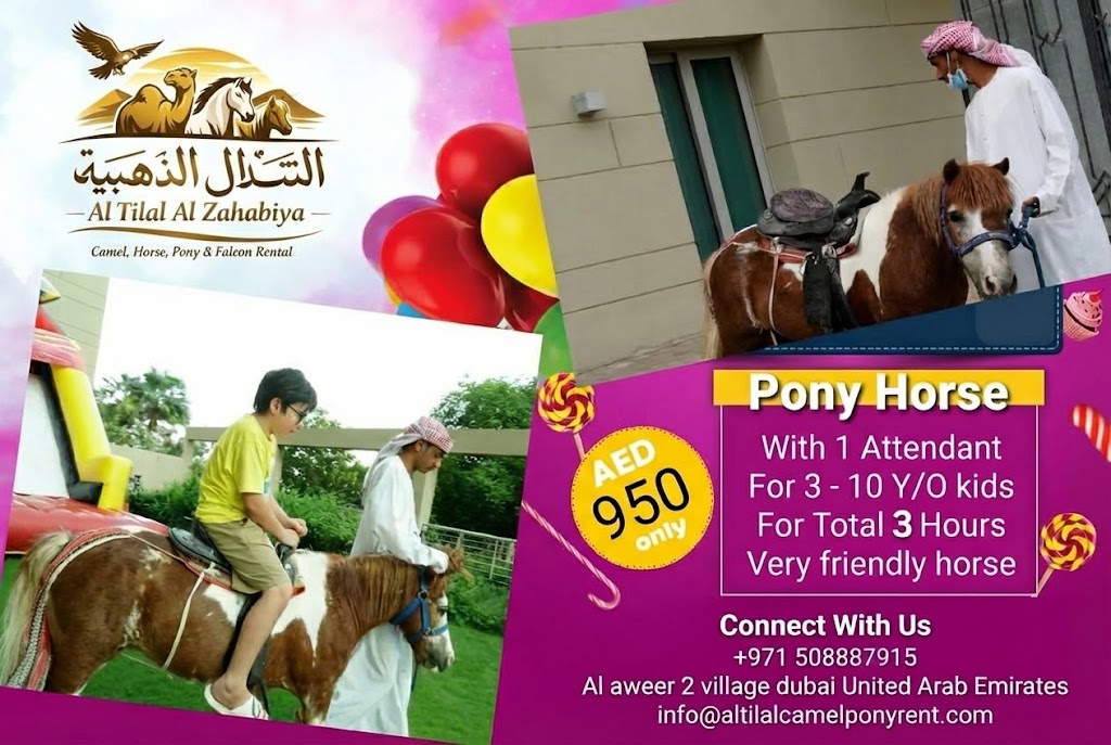 - Healthy & Well-Groomed Animals We prioritize animal welfare. Our camels, horses, ponies, and falcons are healthy, clean, and treated with love, ensuring they are calm and friendly with your guests.